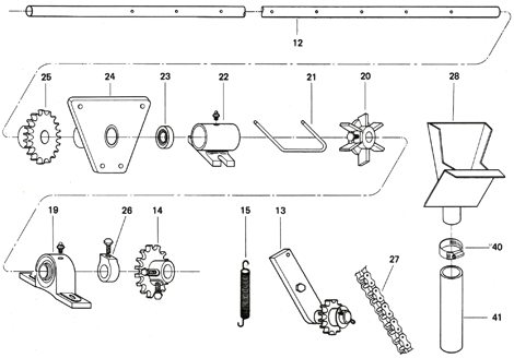 | 13 | Esticador da corrente completo, Engrenagem FoFo 12 dentes x 3/4″ |